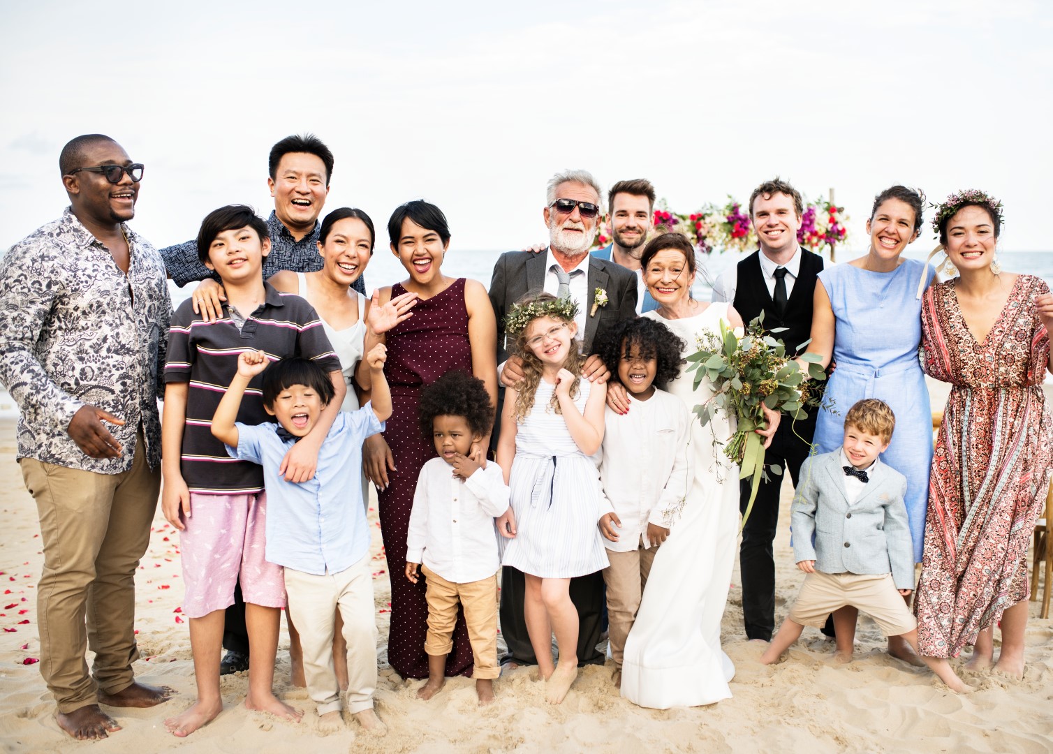 The wedding party is intended to be a collection of those nearest and dearest to the bride and groom, who help ensure the day goes off without a hitch and who lead fellow revelers in celebrating the start of the new couple's life together. That being said, there's no reason this group must be limited to women on her side and guys on his, or even that it's limited to humans - a beloved pooch can make for an adorable ring-bearer, after all.